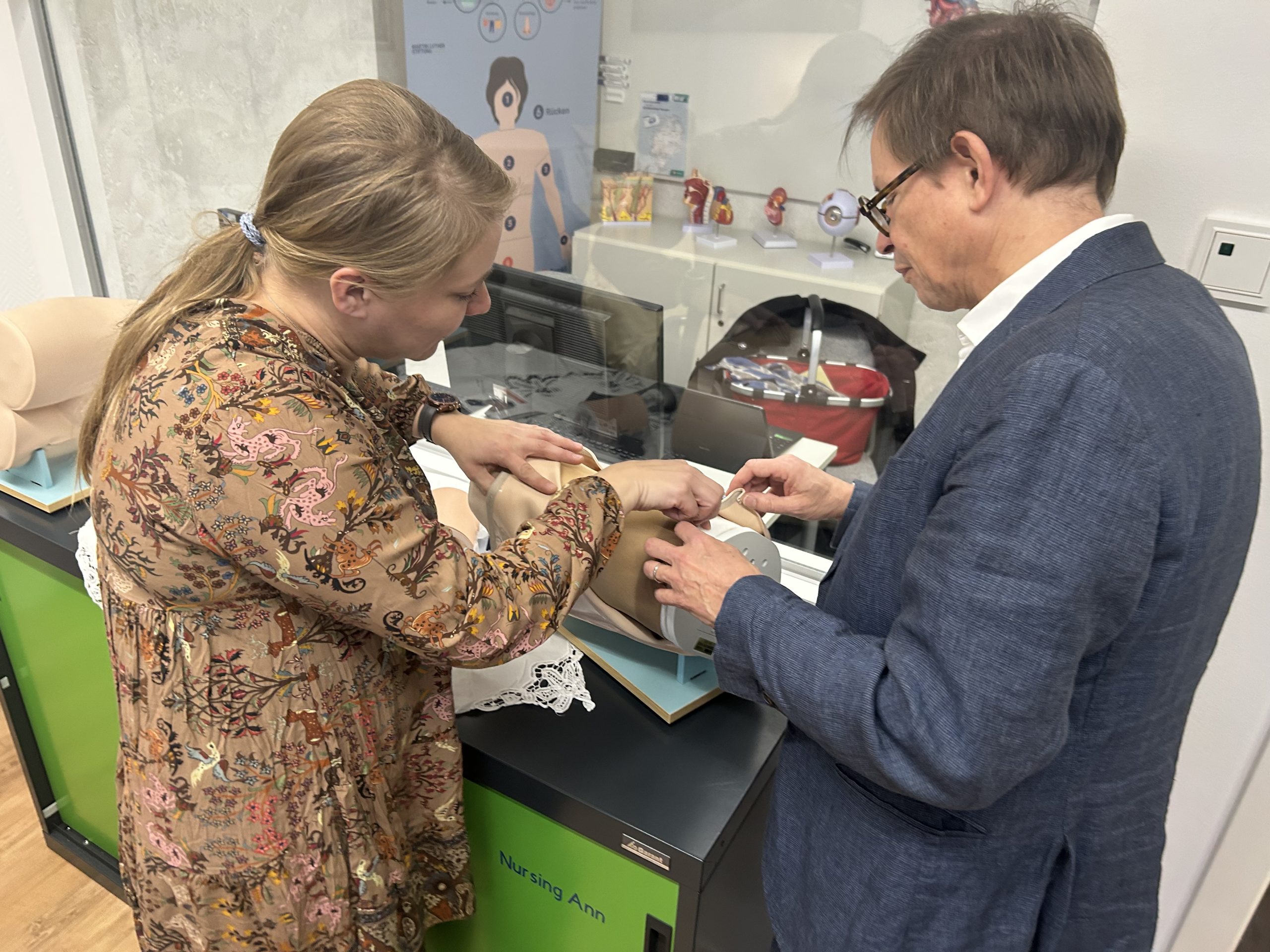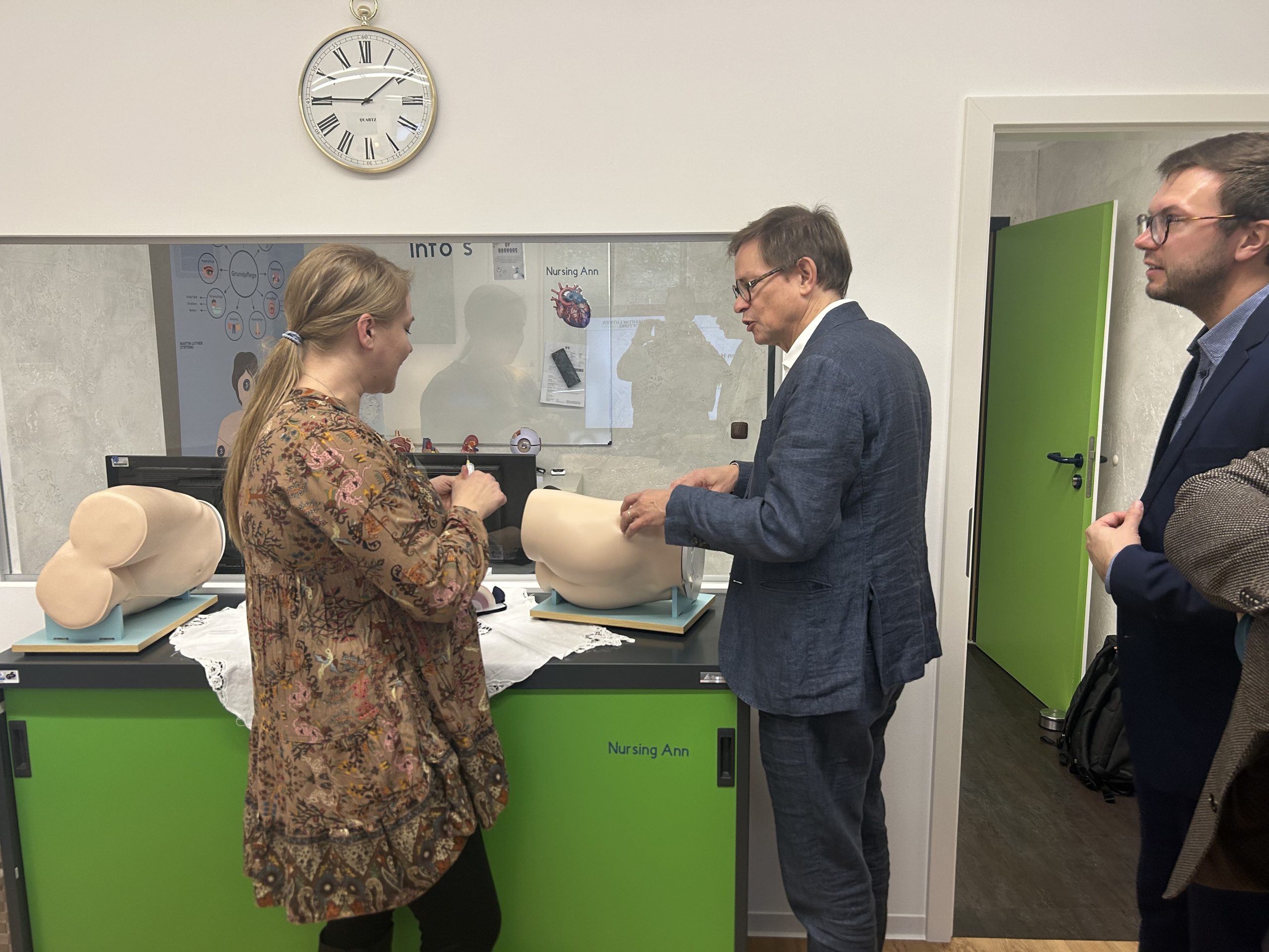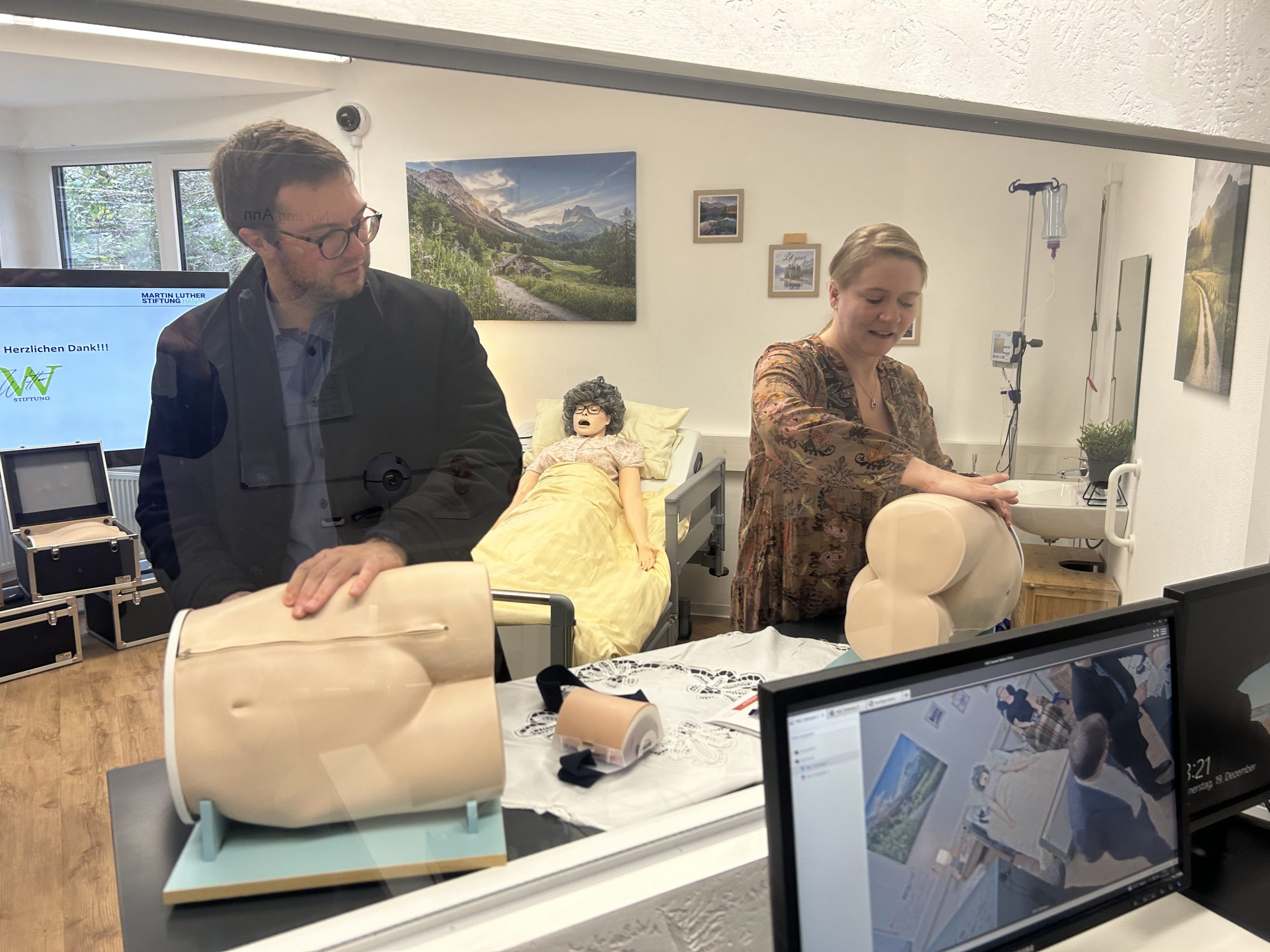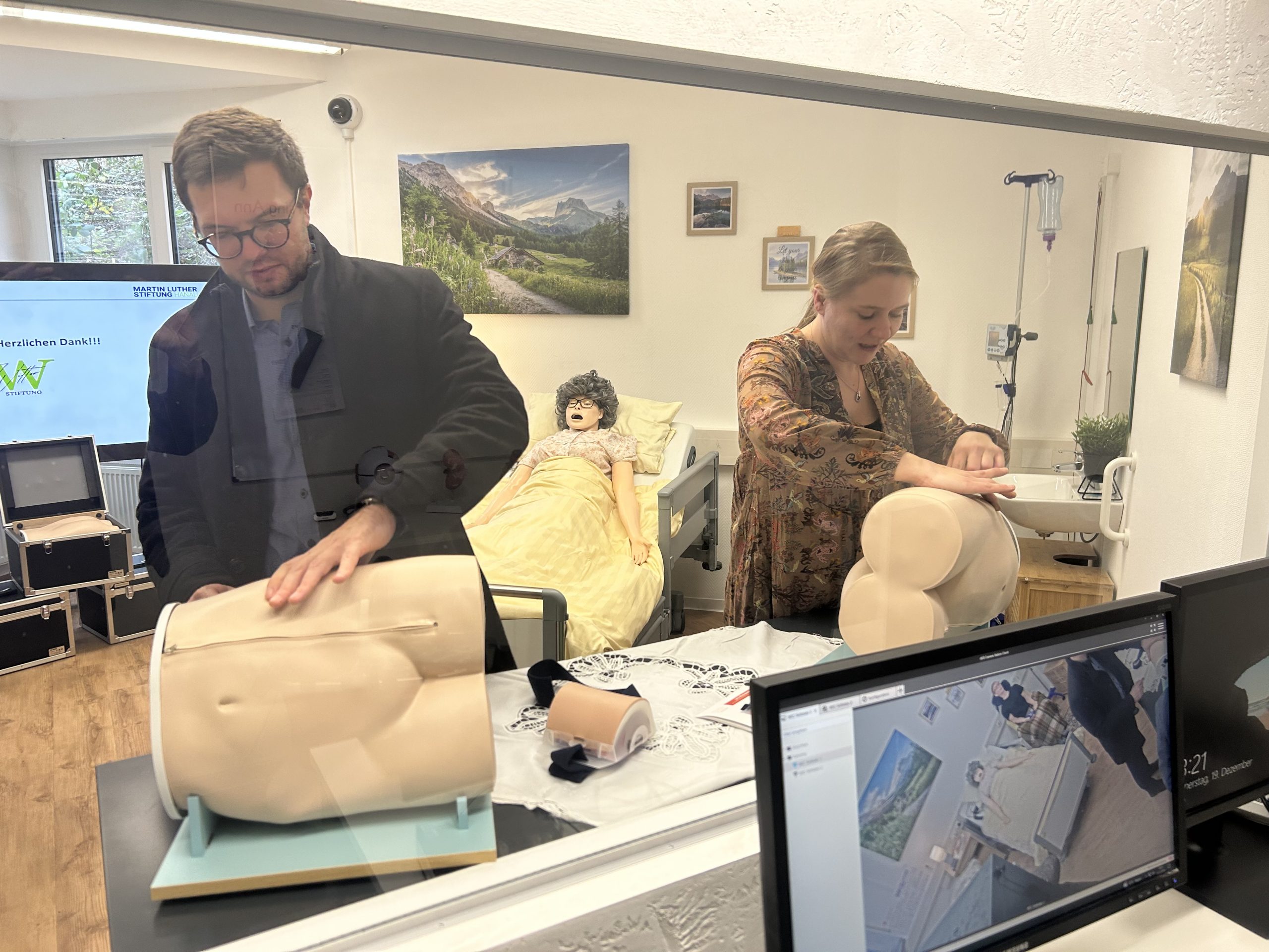 In der Martin Luther Stiftung setzt man auf die direkte Förderung praktischer Fähigkeiten. Ein fester Bestandteil dieses Konzeptes ist das sogenannte „Skills Lab“. Hierbei handelt es sich um einen Lernbereich mit lebensechter Puppe. Sie bekommt mittels eines Pads verschiedene Körperfunktionen zugeordnet. Die Auszubildenden haben die Möglichkeit, im geschützten Raum Gelerntes an der Puppe zu üben. Praxisanleiter beobachten die Tätigkeiten vom Nebenraum aus und besprechen hinterher die Videoaufzeichnung.