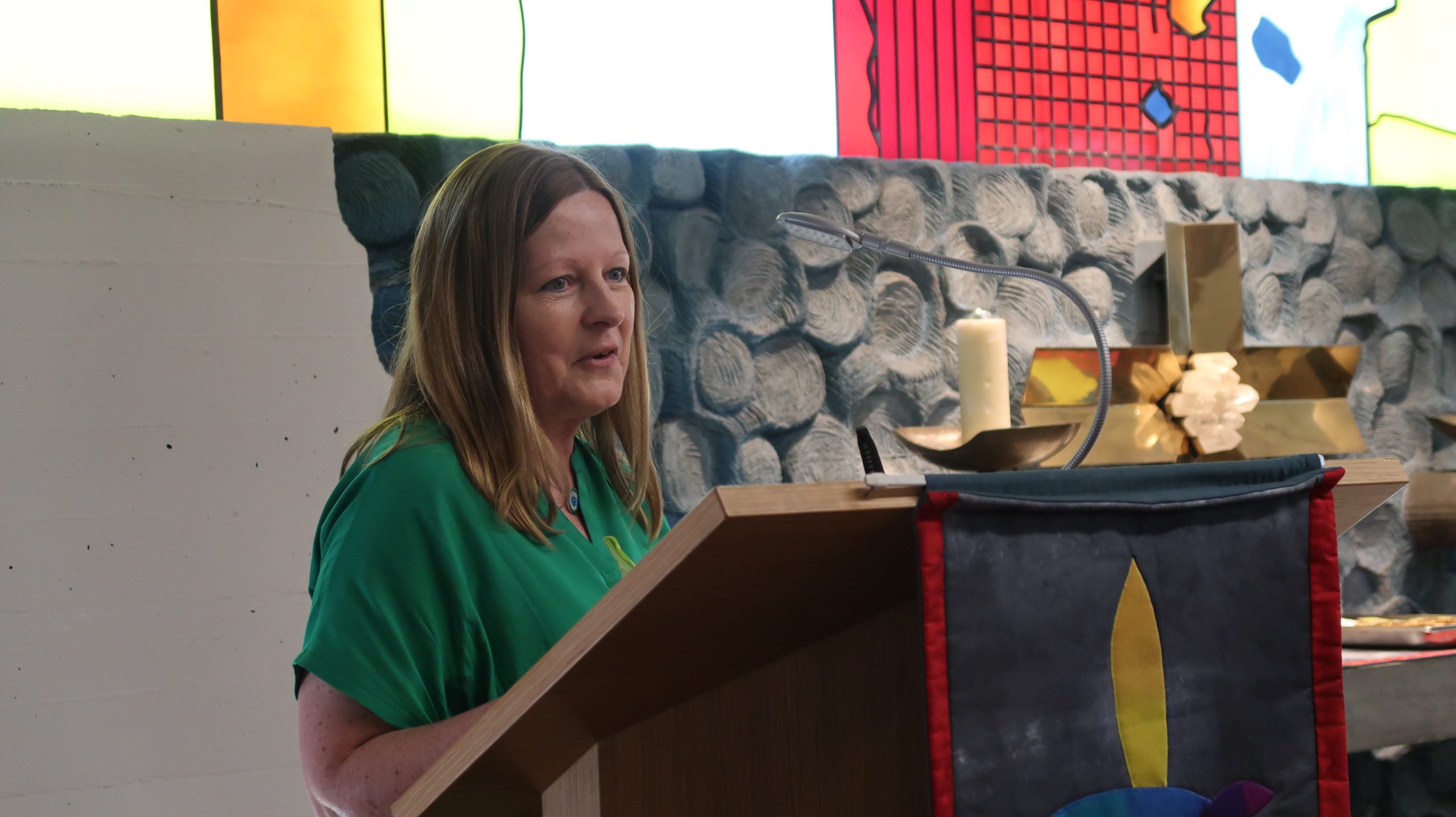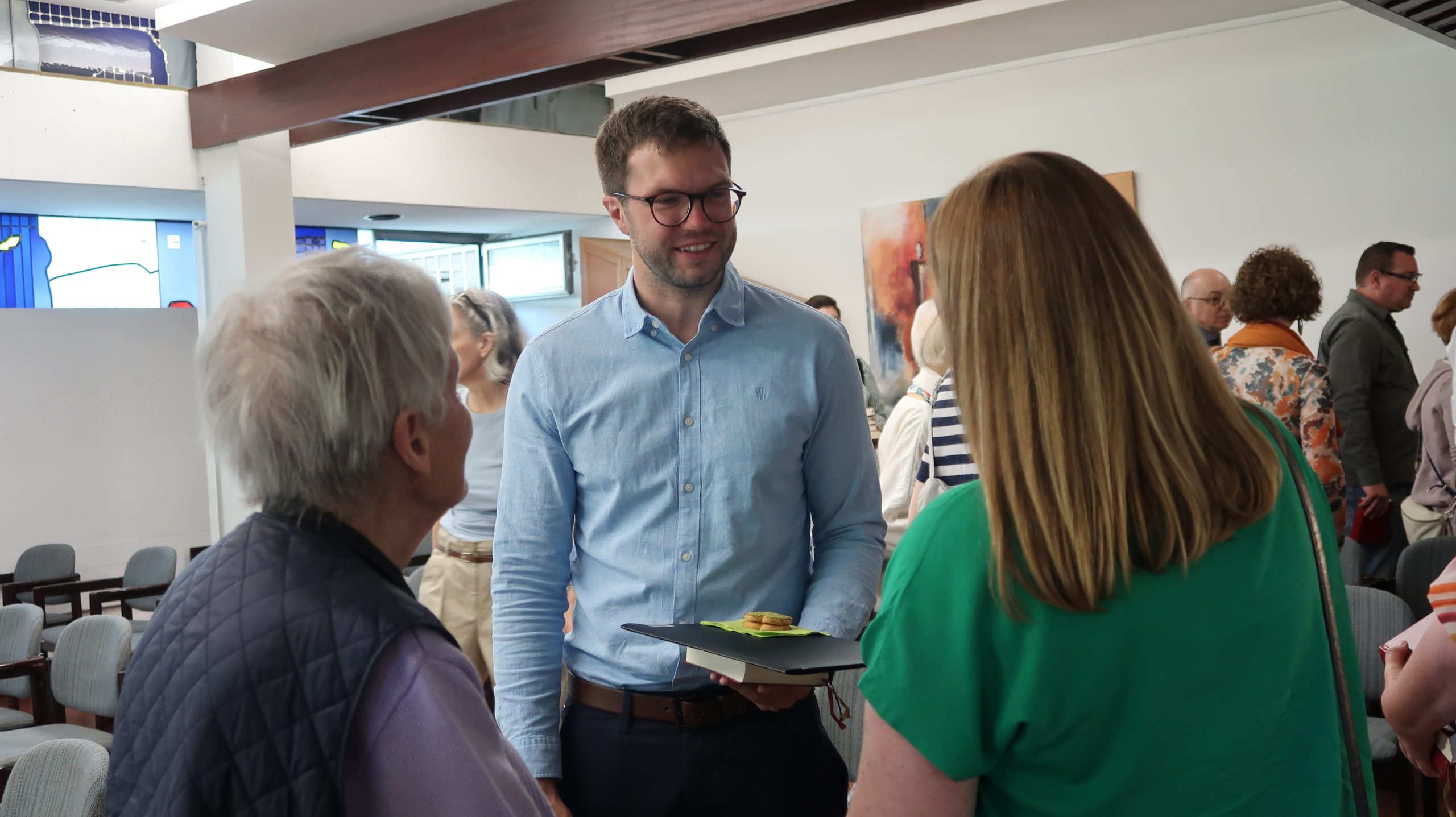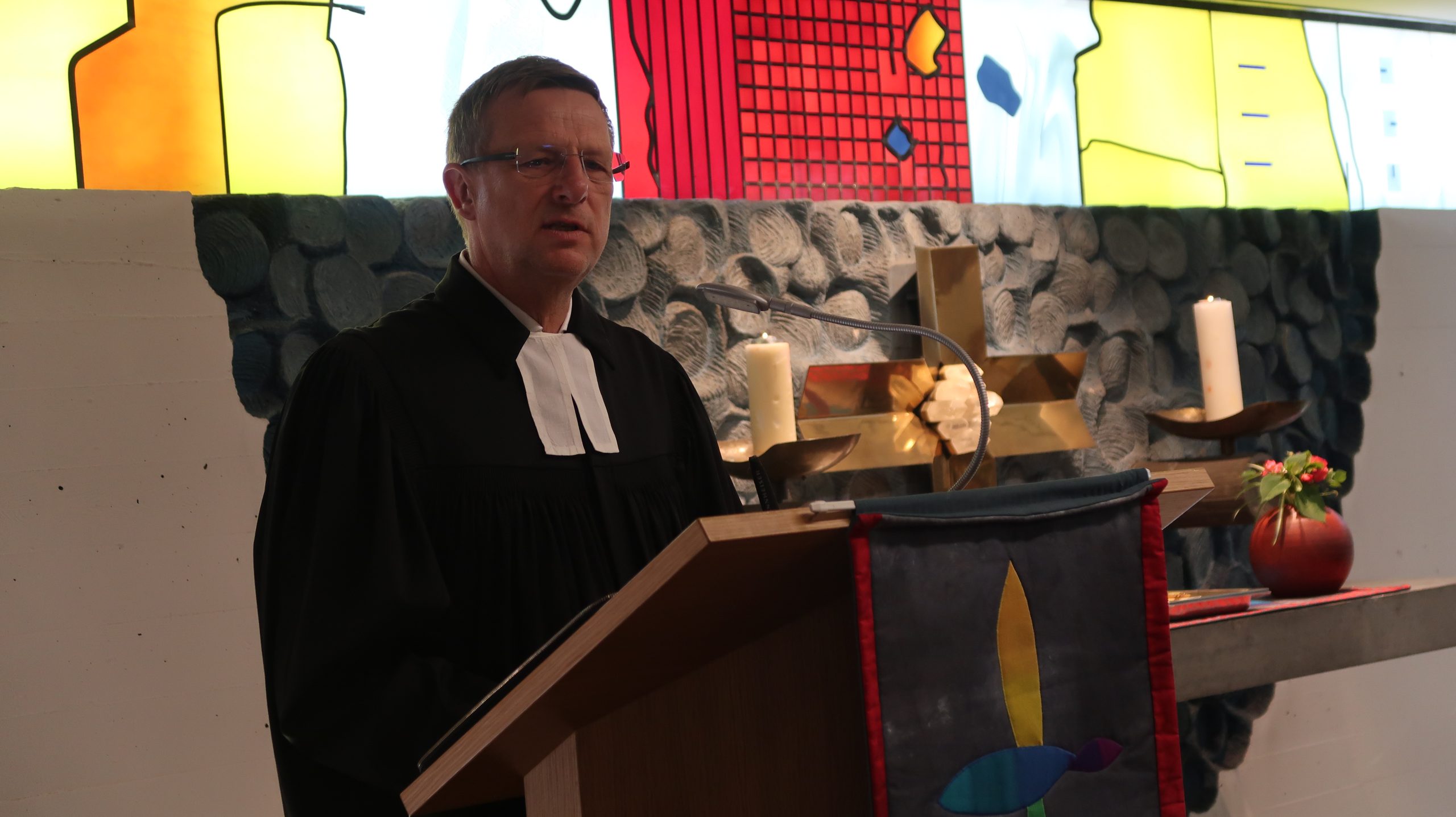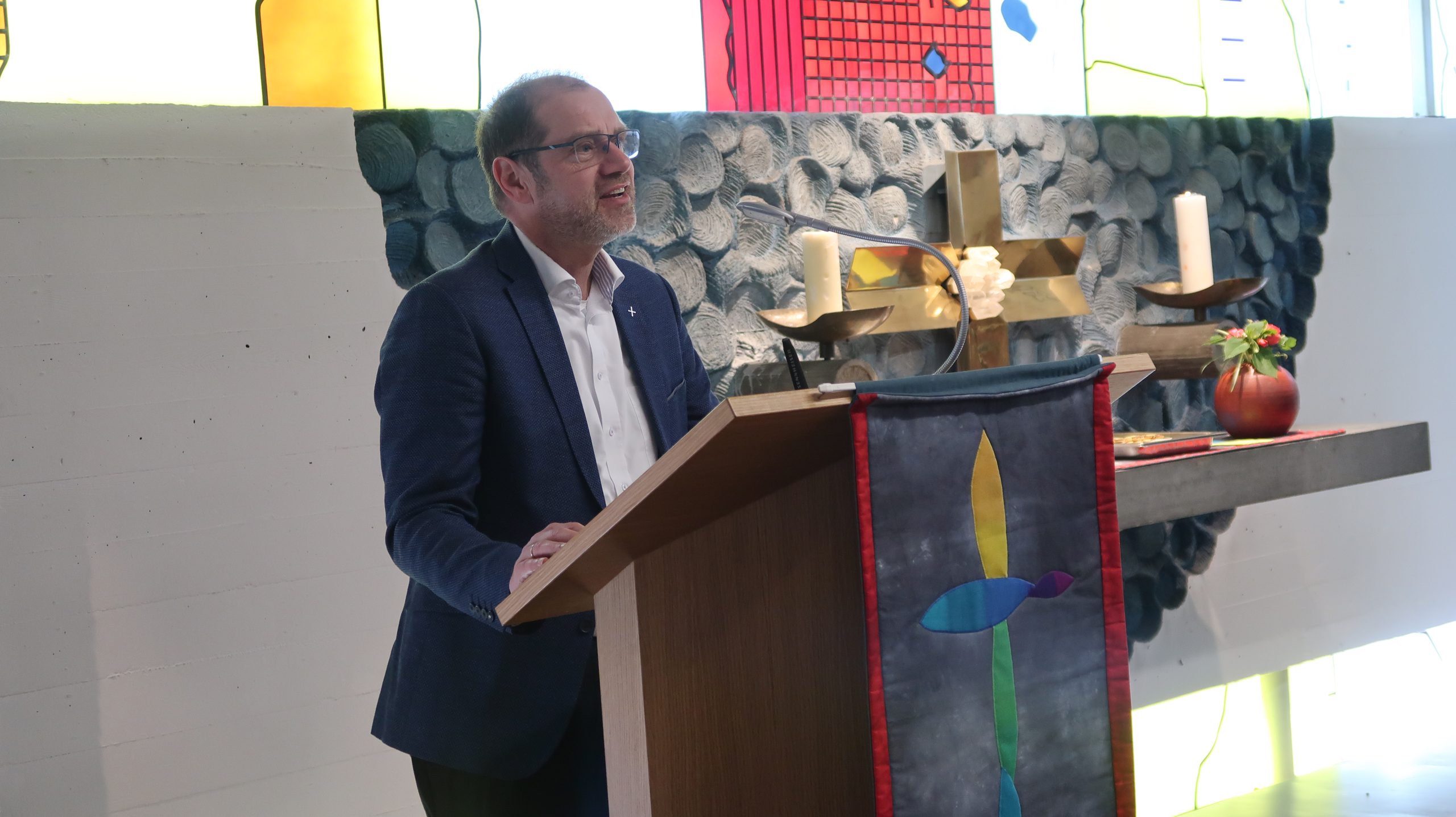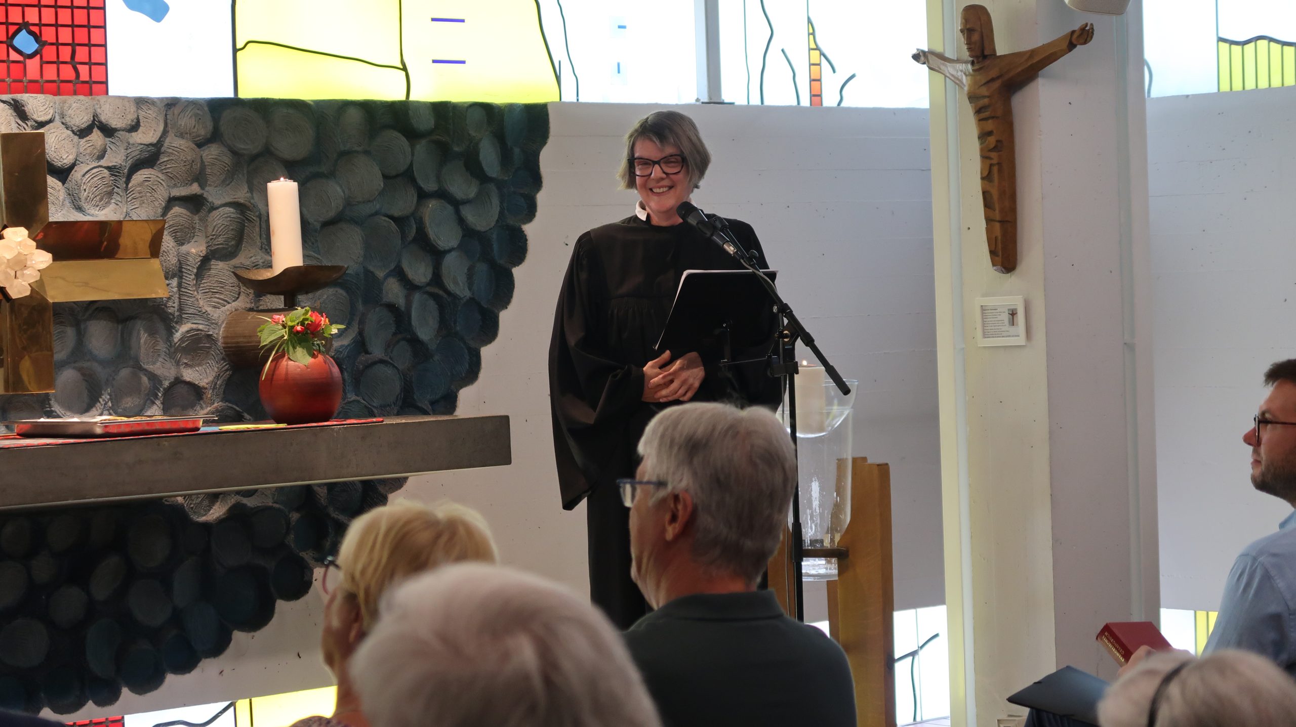 Apropos „Rahmenbedingungen“: Auch die Leitung Soziale Betreuung am Standort Martin-Luther-Anlage 8, Lucia Zeh, erzählte, dass sie und ihr Team den Bewohnern Struktur in ihren Tagesablauf brächten, ihnen Teilhabe böten und Glücksmomente verschafften. Das sei eine sehr erfüllende Tätigkeit, man dürfe aber nicht vergessen, dass die Pflege immer da sei, egal, ob nur wenige Mitarbeiter*innen in der Schicht zur Verfügung stünden oder nicht. „In der Industrie werden Produktionsstraßen geschlossen, in der Gastronomie weniger Tische rausgestellt, aber Pflege muss immer da sein. Wir lieben diesen Beruf, wenn nur nicht dieser Mangel wäre“, so Zeh, „die Rahmenbedingungen müssen sich ändern, damit die Leute auch in dem Beruf bleiben. Es ist ein wertvoller, schöner Beruf. Das sollte er uns wert sein.“ Für ihren emotionalen Appell bekam sie spontanen Applaus in der Kapelle.